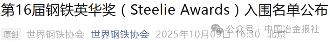 近日,世界鋼鐵協會公布了2025年(�16屆)鋼鐵英華獎(Steelie Awards)經評審篩選后的最終入圍名單�